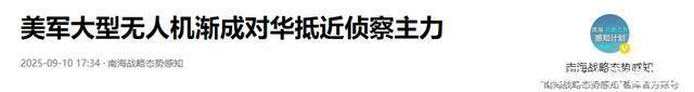 美军大型无人机渐成对华抵近侦察主力2025-09-1017:34·南海战略态势感知